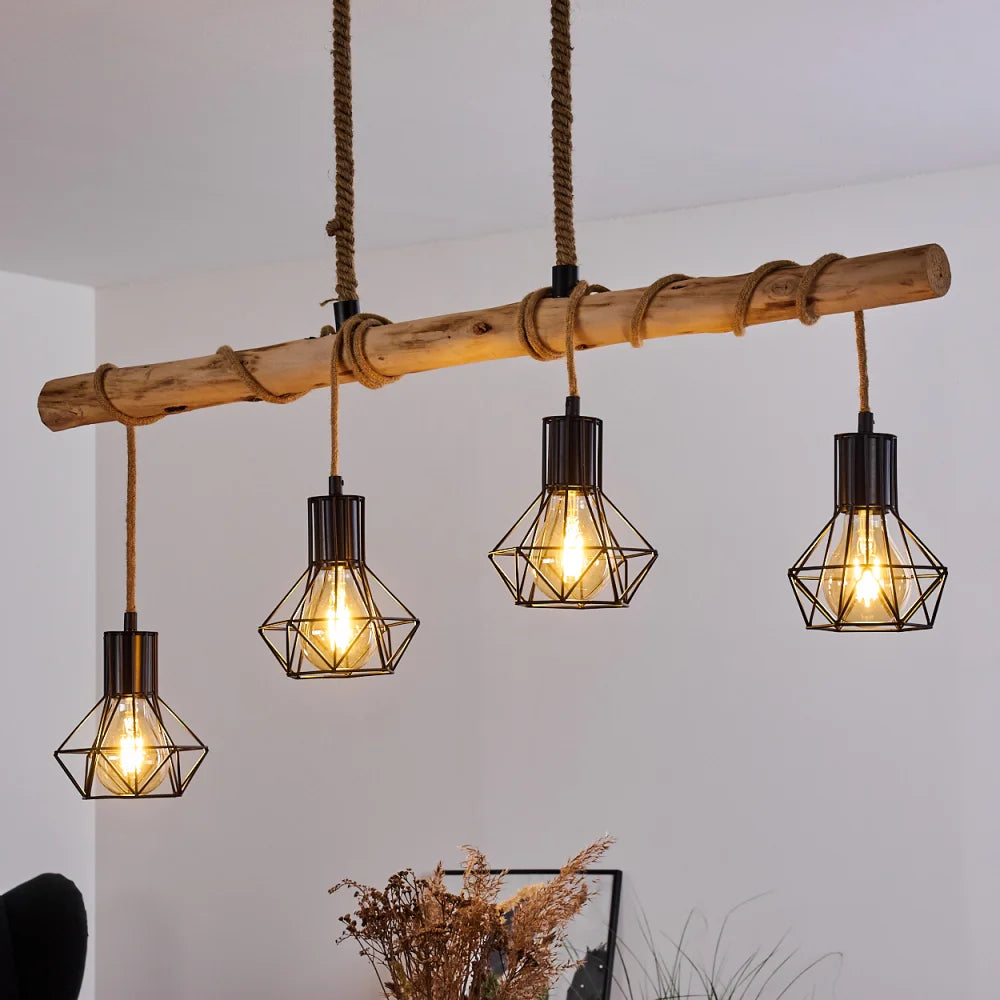 Suspension Betsele Bois clair, Noir, 4 lumières