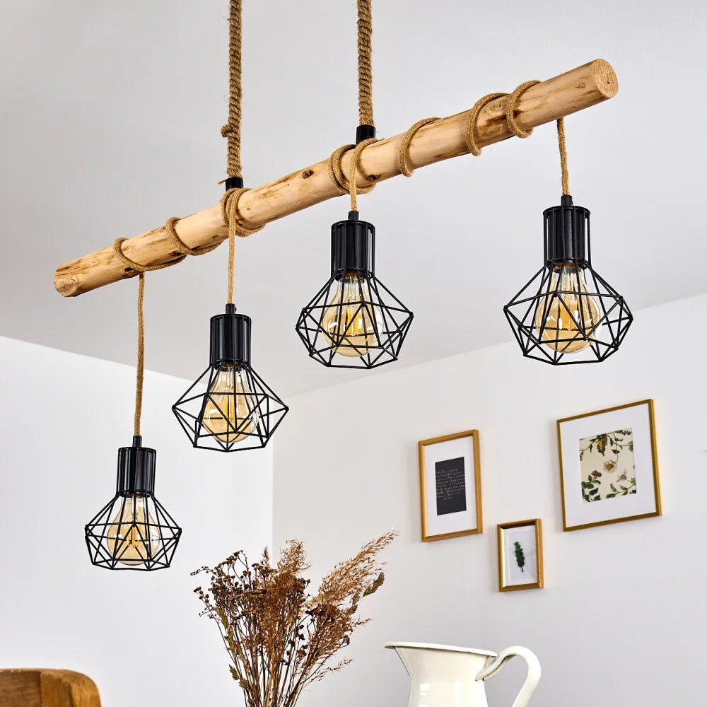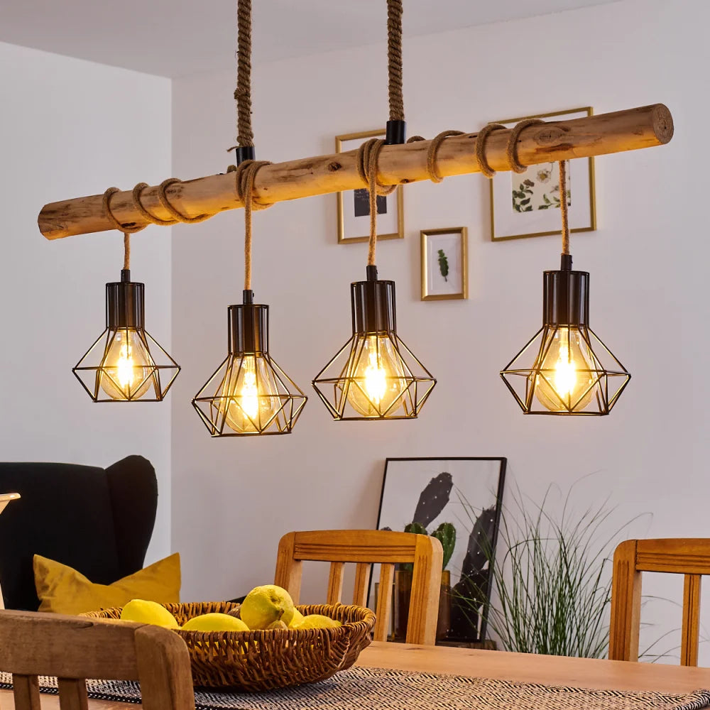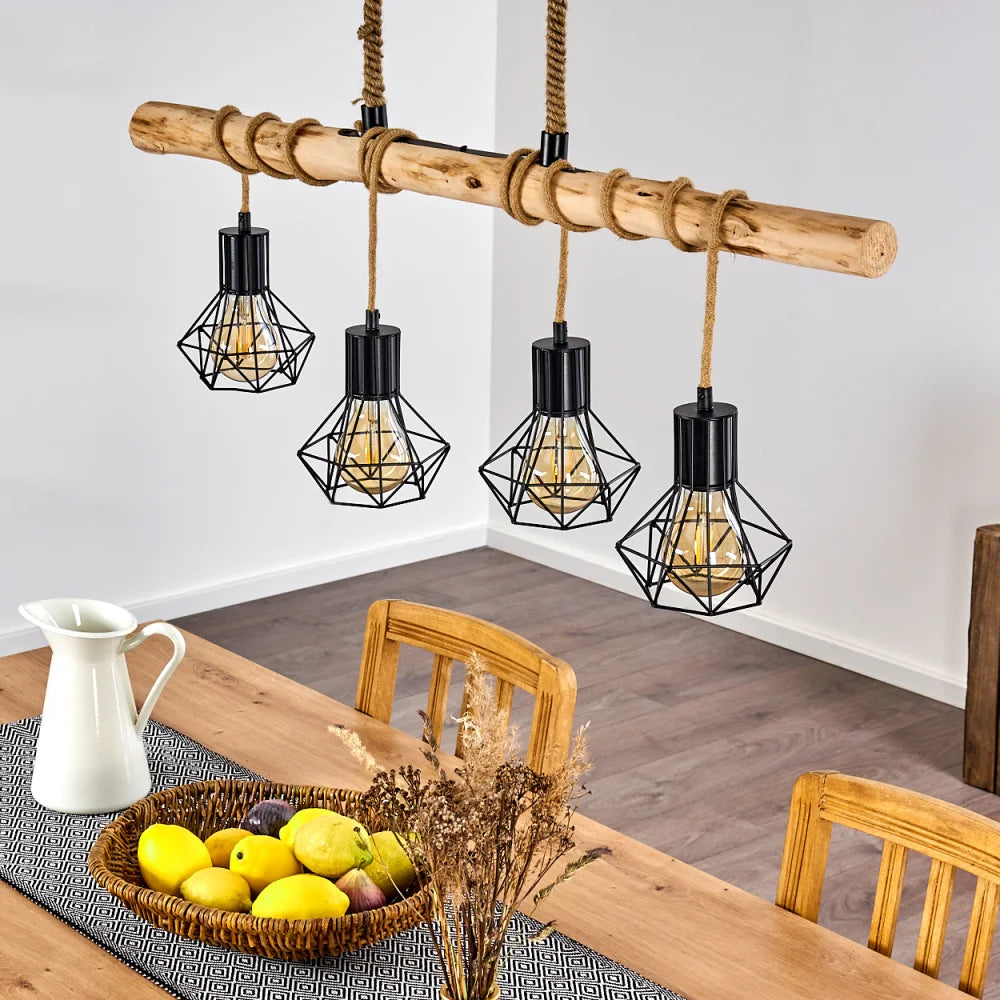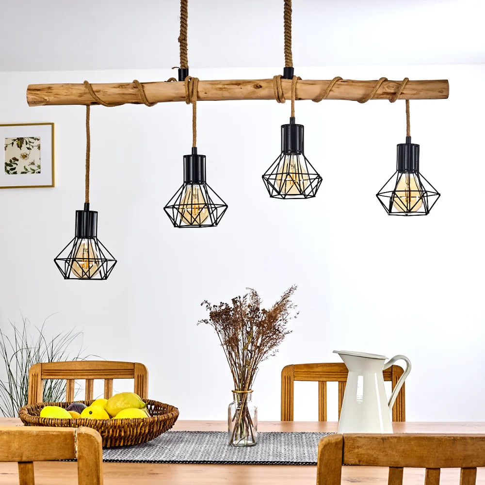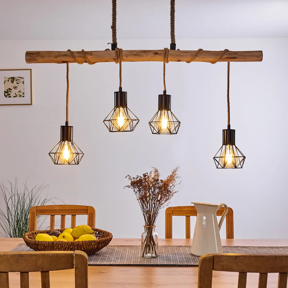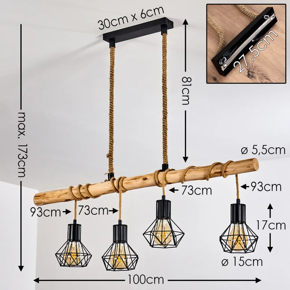 Suspension Bardhaman Brun, Noir, 4 lumières